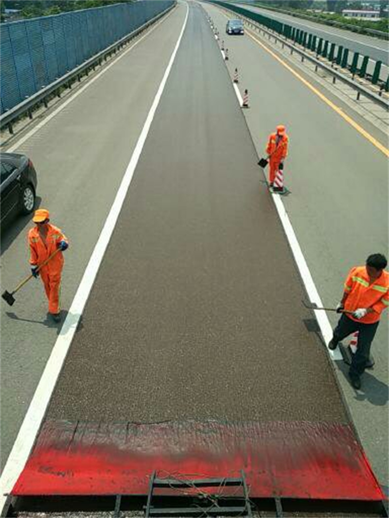 應(yīng)用范圍:     砂封層主要應(yīng)用于高速公路,一、二級公路瀝青路面的預(yù)防性養(yǎng)護(hù)。可以進(jìn)行美化路緣、路肩施工。經(jīng)過砂封層施工后可以改變新舊路面的外觀及顏色。施工說明:砂封層是一種層鋪的施工工藝。采用同步碎石封層設(shè)備將聚合物改性粘結(jié)材料和骨料金剛砂同時撒布施工的一種施工工藝。粘結(jié)材料應(yīng)選擇高濃高粘且具有一定滲透型和還原性。骨料需選擇耐磨的金剛砂。技術(shù)特點(diǎn):(1)常溫施工,無需加熱,節(jié)能環(huán)保。(2)用來解決瀝青路表面瀝青老化出現(xiàn)的貧油狀況。(3)解決原路面出現(xiàn)的麻面、松散掉粒、輕微裂縫等現(xiàn)象。(4)新路面可以起到防水的作用。(5)增加路面摩擦系數(shù)和耐磨性能。施工工藝:封閉交通→清理路面→病害處理→砂封層施工→養(yǎng)生→開放交通